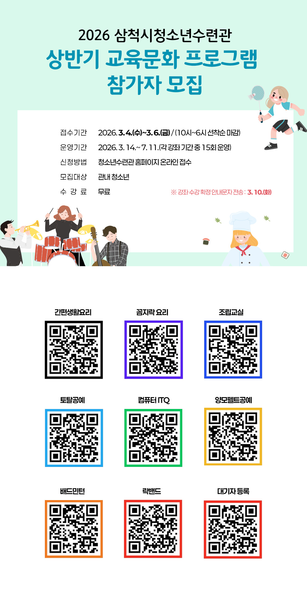 2026 삼척시청소년수련관 상반기 교육문화 프로그램 참가자 모집